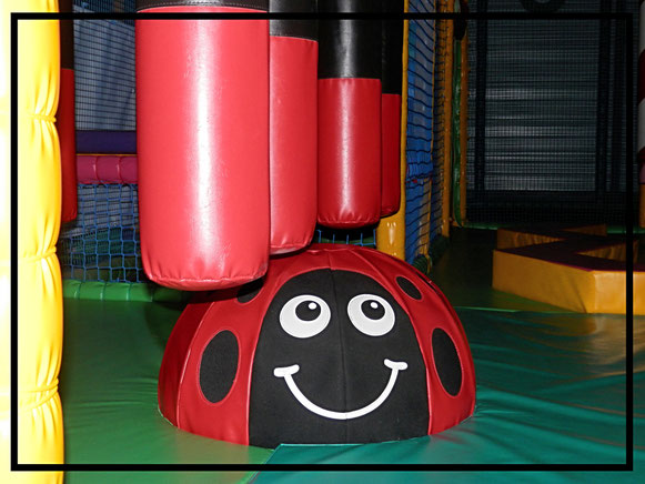 - Une structure sur 3 étages avec toboggans à 4 voies, piscines à balles, mur d’escalade et ponts suspendus